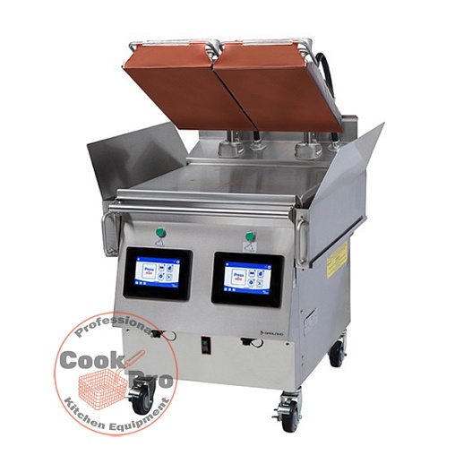Пользовательский интерфейс позволяет проводить диагностику и выявление ошибок, что облегчает обслуживание и своевременность ремонта. Усовершенствованный контроль температуры устраняет превышение и уменьшение заданной температуры, самостоятельно управляя пятью независимыми нагреваемыми элементами - тремя на обеих нижних жарочных поверхностях и двумя на обеих верхних створках.