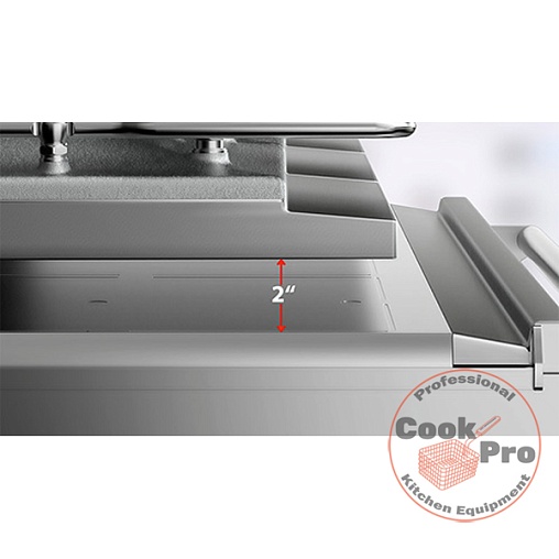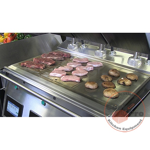 Верхняя створка автоматически поднимается и опускается, зазор при ее опускании может быть от 0 до 5 cм. Корпус гриля выполнен из нержавеющей стали. Нижняя жарочная поверхность толщиной 19 мм выполнена из полированной углеродистой стали. Верхние нагревательные элементы выполнены из никелированного литого алюминия. Верхняя прижимная створка закрывается заменяемыми тефлоновыми листами.