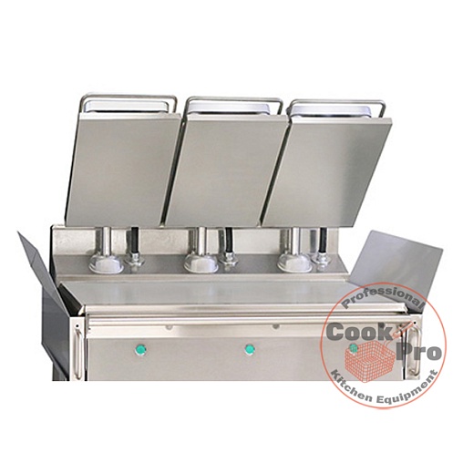 По обе стороны устройства расположены стальные емкости для сбора жира и пищевых отходов. Дополнительно можно заказать держатели для аксессуаров: 10,16-сантиметровой спатулы, 15,24-сантиметрового скребка и 17,78-сантиметровой линейки.