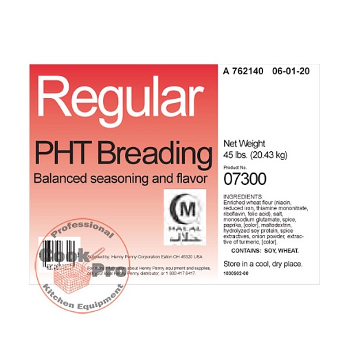 Сбалансированная приправа Henny Penny Regular PHT Breading 07300 с мягким, чуть солоноватым привкусом. Текстура панировки на готовом продукте - мягкая, с богатым вкусом, нехрустящая, не такая, как ожидается от традиционной курицы в панировке. Перед готовкой рекомендуется выдержать запанированный продукт в течение 15-30 минут.
