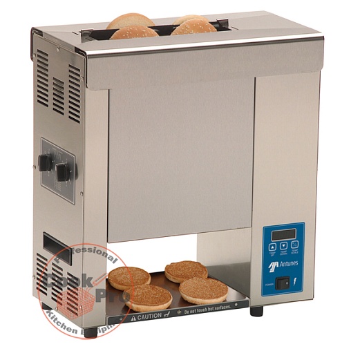 Тостер Antunes VCT-2000 карамелизует булочки для бургеров таким образом, чтобы соусы не проникали внутрь булочки, разрушая ее структуру и портя внешний вид бургера. Высокая производительность позволяет использовать конвейерные тостеры в сетевых заведениях с большой проходимостью.